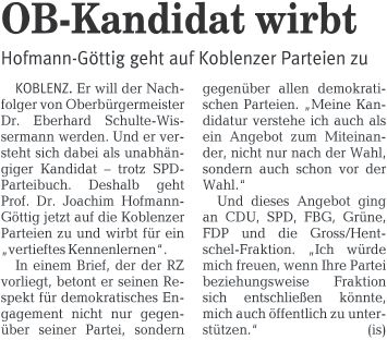 Überparteiliche Wählerinitiative: Joachim Hofmann-Göttig zum Koblenzer