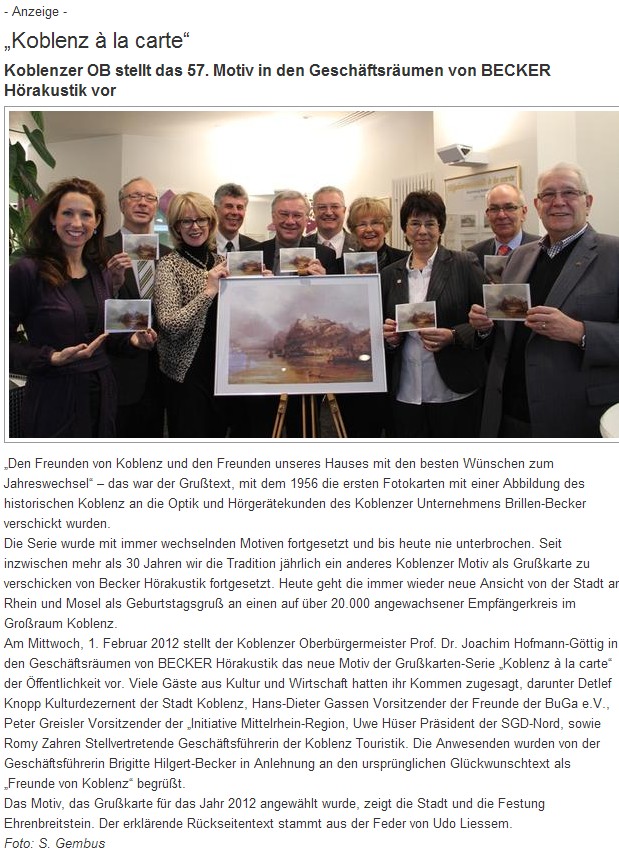 Auszug: KoblenzErleben Die Zeitung 03.02.2012, S.18
