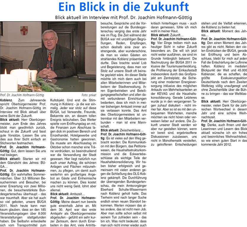 Blick aktuell, Koblenz 17.12.2011, S.1; S. 4