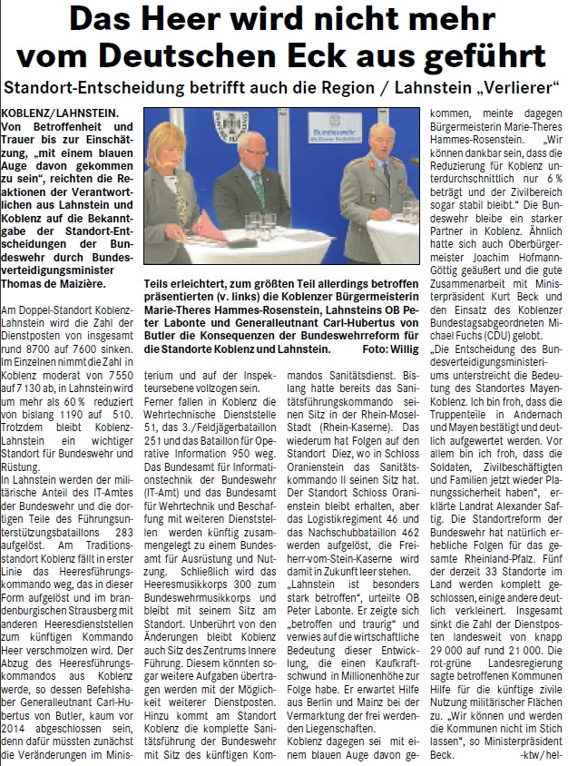 Wortlaut der Presseinformation der Stadt Koblenz, 10.11.2011