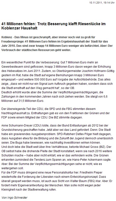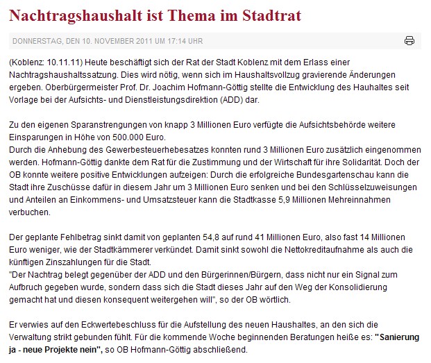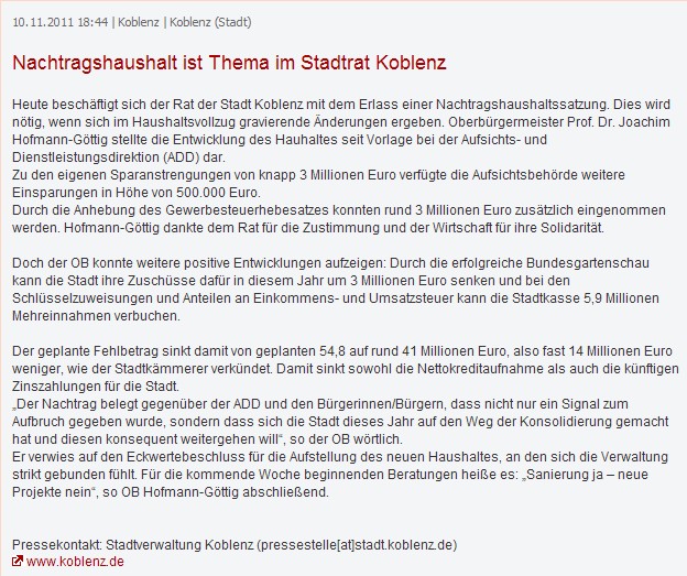 Wortlaut der Presseinformation der Stadt Koblenz 07.11.2011
