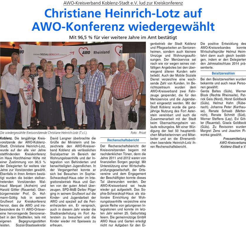 Auszug: Wortlaut und Foto der Pressemeldung der Stadt Koblenz, 20.07.2015