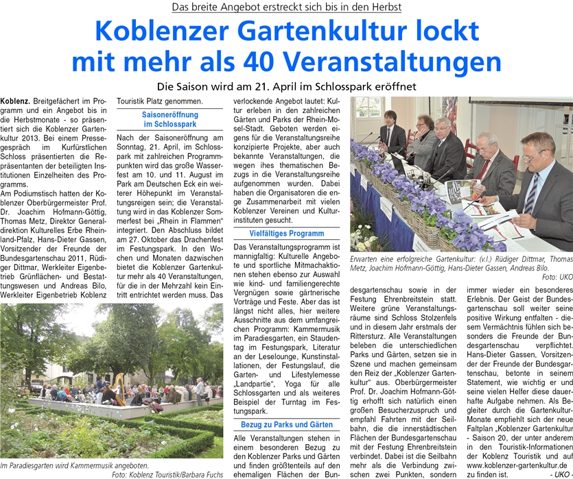 Wortlaut der Pressemeldung der Stadt Koblenz, Koblenz 30.04.2013