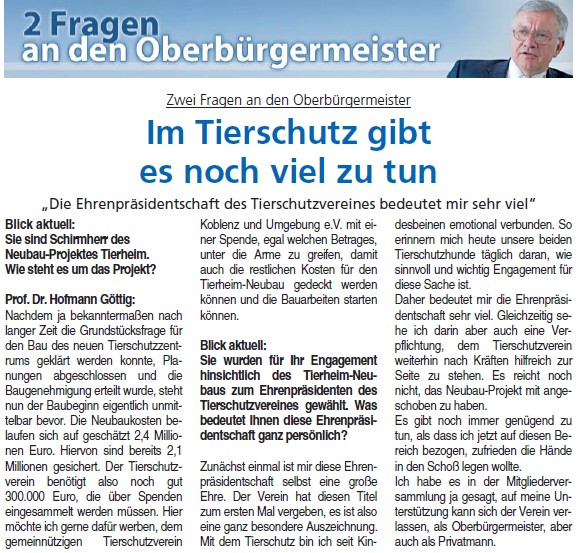 Mit Interviews des Werkleiters Eigenbetrieb Koblenz-Touristik und OB Hofmann-Göttig