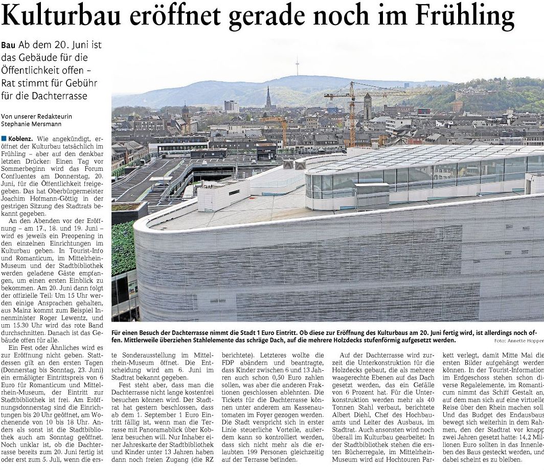 ” Stadtrat im Mai – OB verkündet Termin für Eröffnung des Forum Confluentes