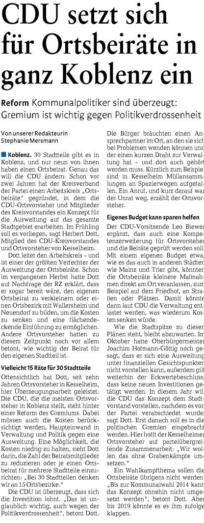 Auszug aus dem Wortlaut der Pressemitteilung der Stadt Koblenz, 16.01.2013