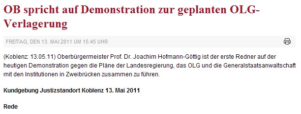 ” Im Namen der Stadt Koblenz erhebe ich Einspruch gegen genau einen Satz in der Koalitionsvereinbarung mit Bezug auf das Oberlandesgericht Koblenz und die Generalstaatsanwaltschaft Koblenz.