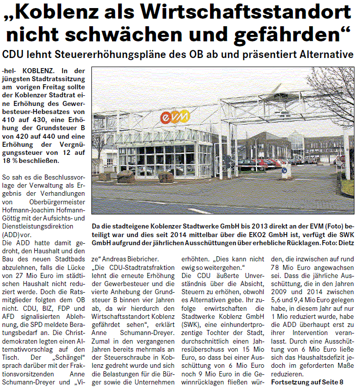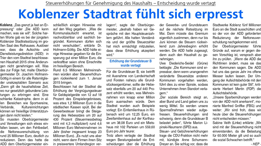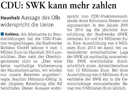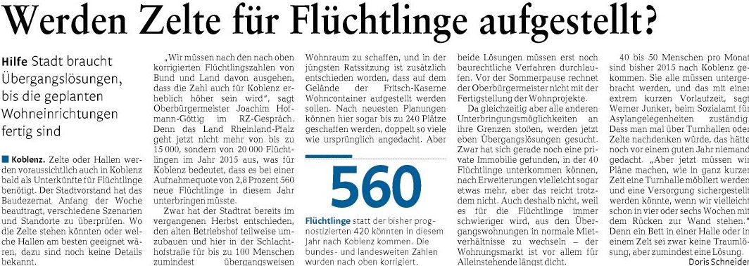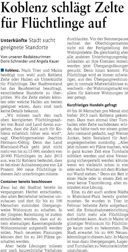 Auszug: Rhein-Zeitung, Koblenz, 25.03.2015, S.5