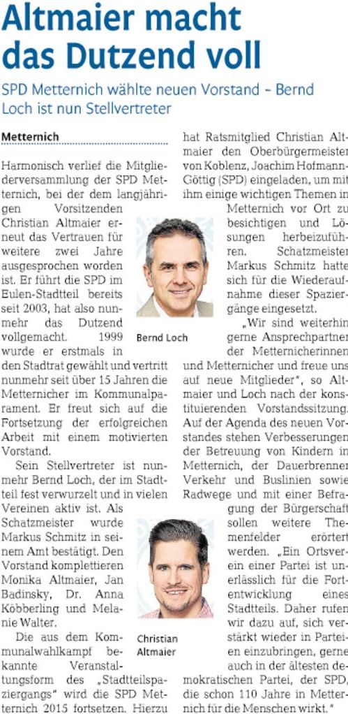 Rhein-Zeitung, Koblenz,02.04.2015, S. 47; Beilage Rhein-Zeitung “Wir von Hier”, Koblenz u.a., 3. Jahrgang, Nr. 13, S.11