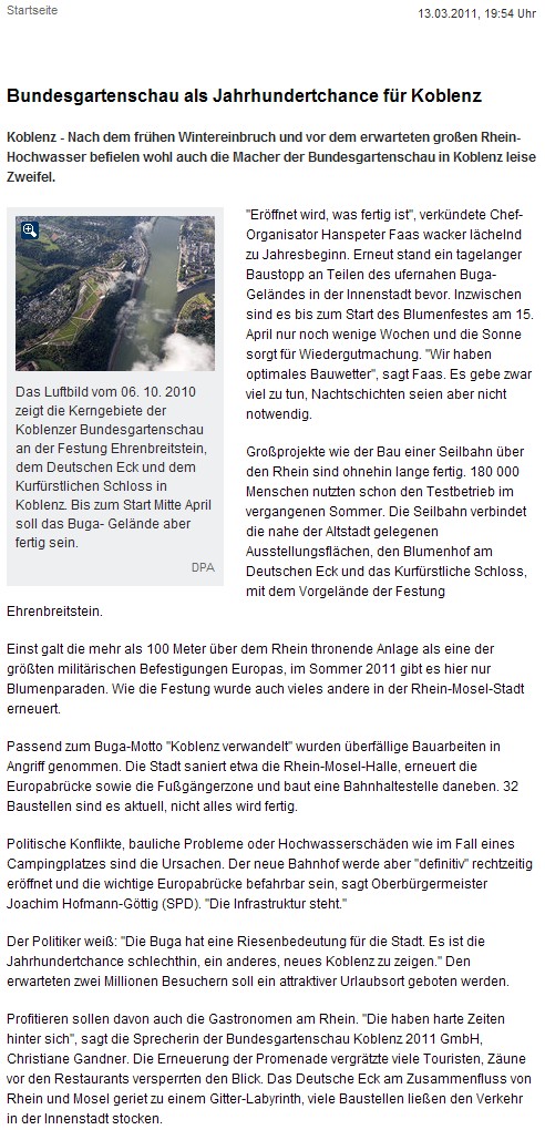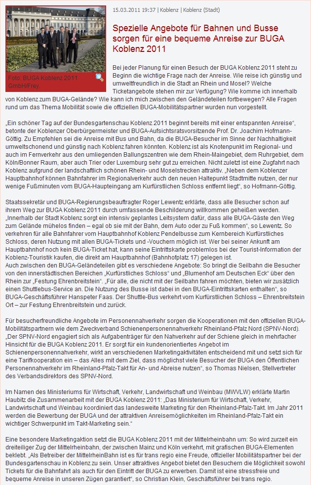 Auszug aus dem Wortlaut und Bild der Pressemitteilung der BuGa Koblenz 2011 GmbH, Koblenz 15.03.2011:
