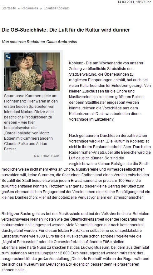 Auszug: Rhein-Zeitung online 14.03.2011