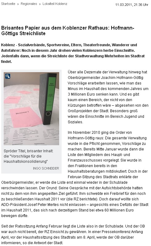 Auszug: Rhein-Zeitung online 15.03.2011