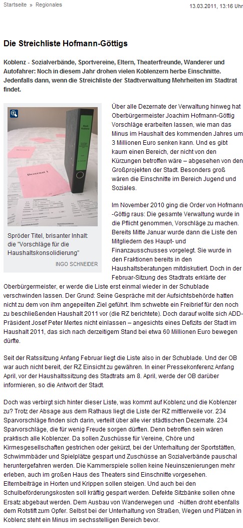 Auszug: Rhein-Zeitung online 13.03.2011