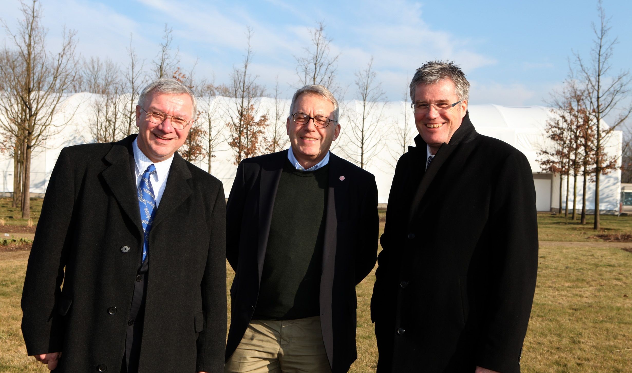 Linkes Bild v.l.n.r.: Der Koblenzer Oberbürgermeister Prof. Dr. Joachim Hofmann-Göttig, DBG-Geschäftsführer Jochen Sandner und BUGA-Geschäftsführer Hanspeter Faas.