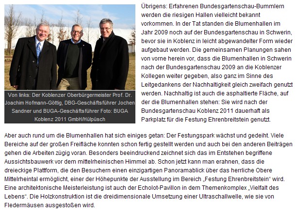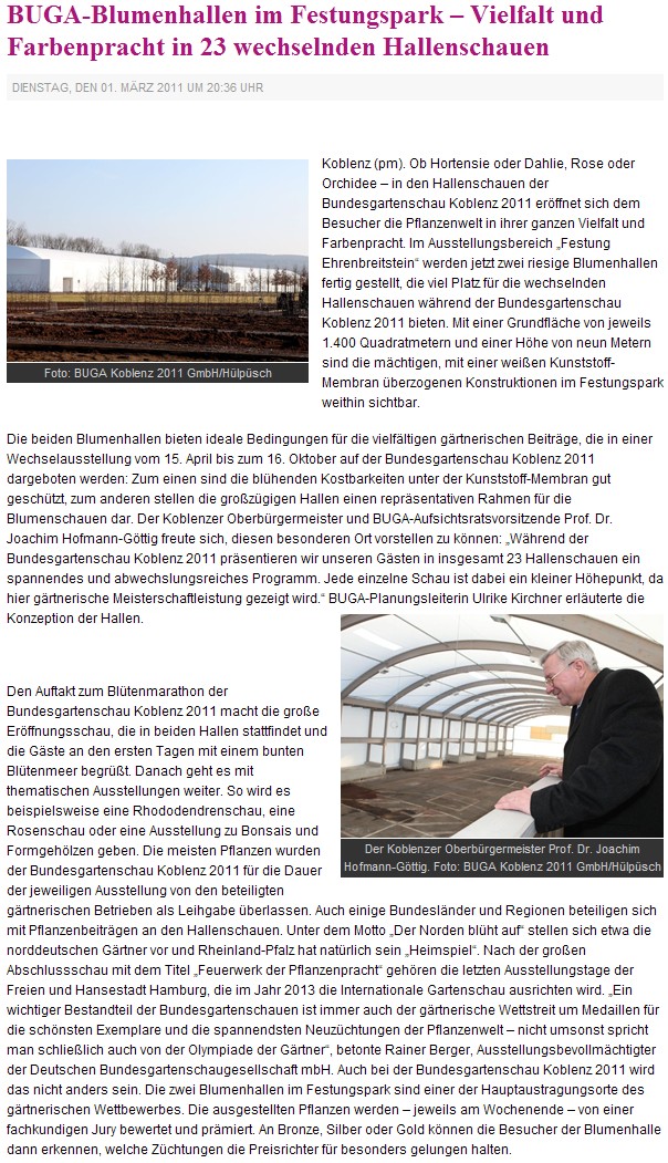 Auszug aus Bildern und dem Wortlaut der Pressemitteilung der Bundesgartenschau Koblenz 2011 GmbH, Koblenz 01.03.2011