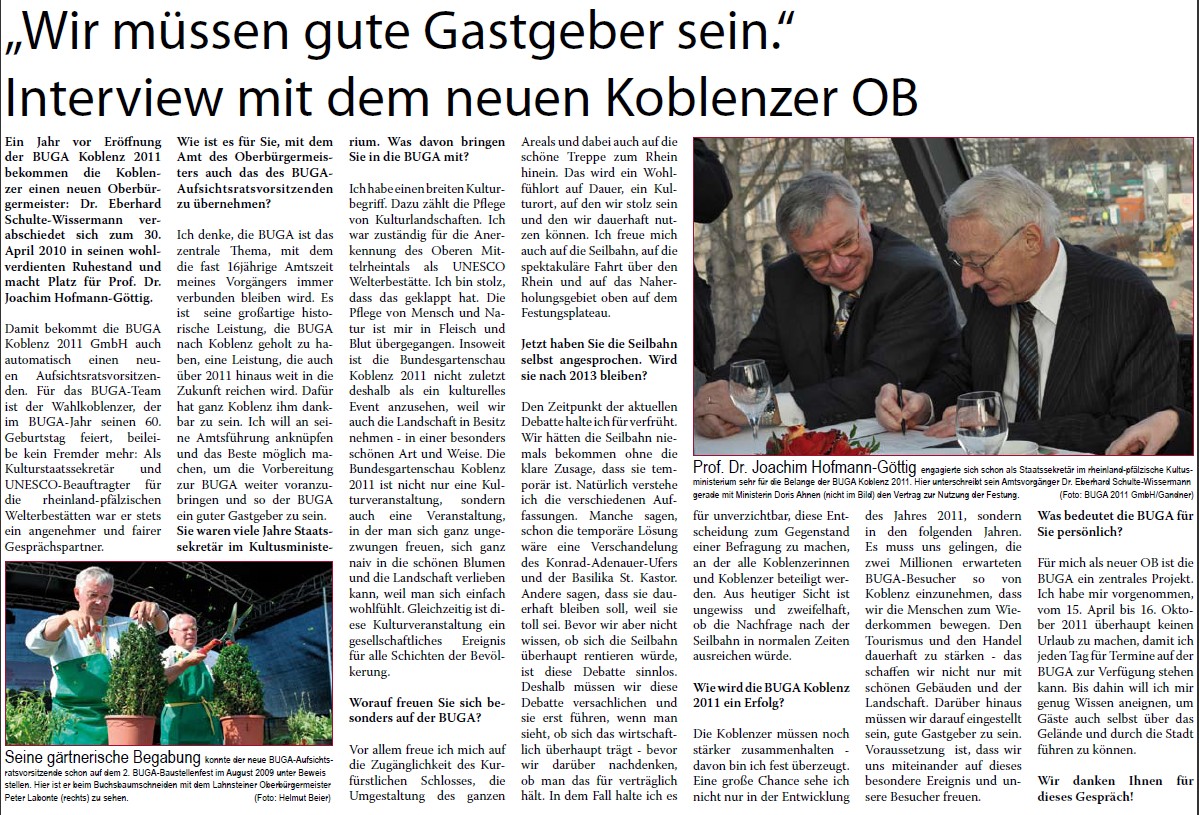 Quelle Bild und Text : Bundesgartenschau Koblenz 2011 GmbH, Pressesprecherin, i.A. Christiane Gandner 15.04.2010: Bundesgartenschau Koblenz 2011 GmbH