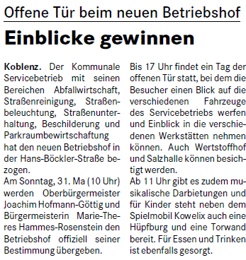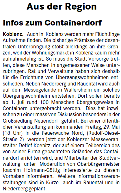 Wortlauit der Pressemeldung der Stadt Koblenz, 22.5.2015