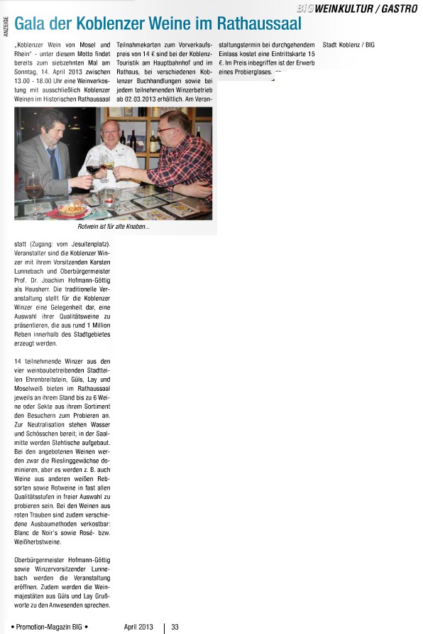 Donnerstag 18.04.2013: Auszug aus Terminen von OB Hofmann-Göttig (ansonsten weitere Termine in Koblenz)