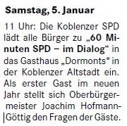 Montag 14.01.2013: Auszug aus Terminen von OB Hofmann-Göttig (ansonsten weitere Termine in Koblenz)