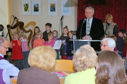 Lyrische Frühlingstexte trugen Mitglieder des Seniorenbeirates und des Fördervereins der Stadtbibliothek vor. Als prominentester Redner würdigte der neue Oberbürgermeister Prof. Dr. Hofmann-Göttig dieses Fest als gelungene Gelegenheit der internationalen Begegnung von Jung und Alt. “