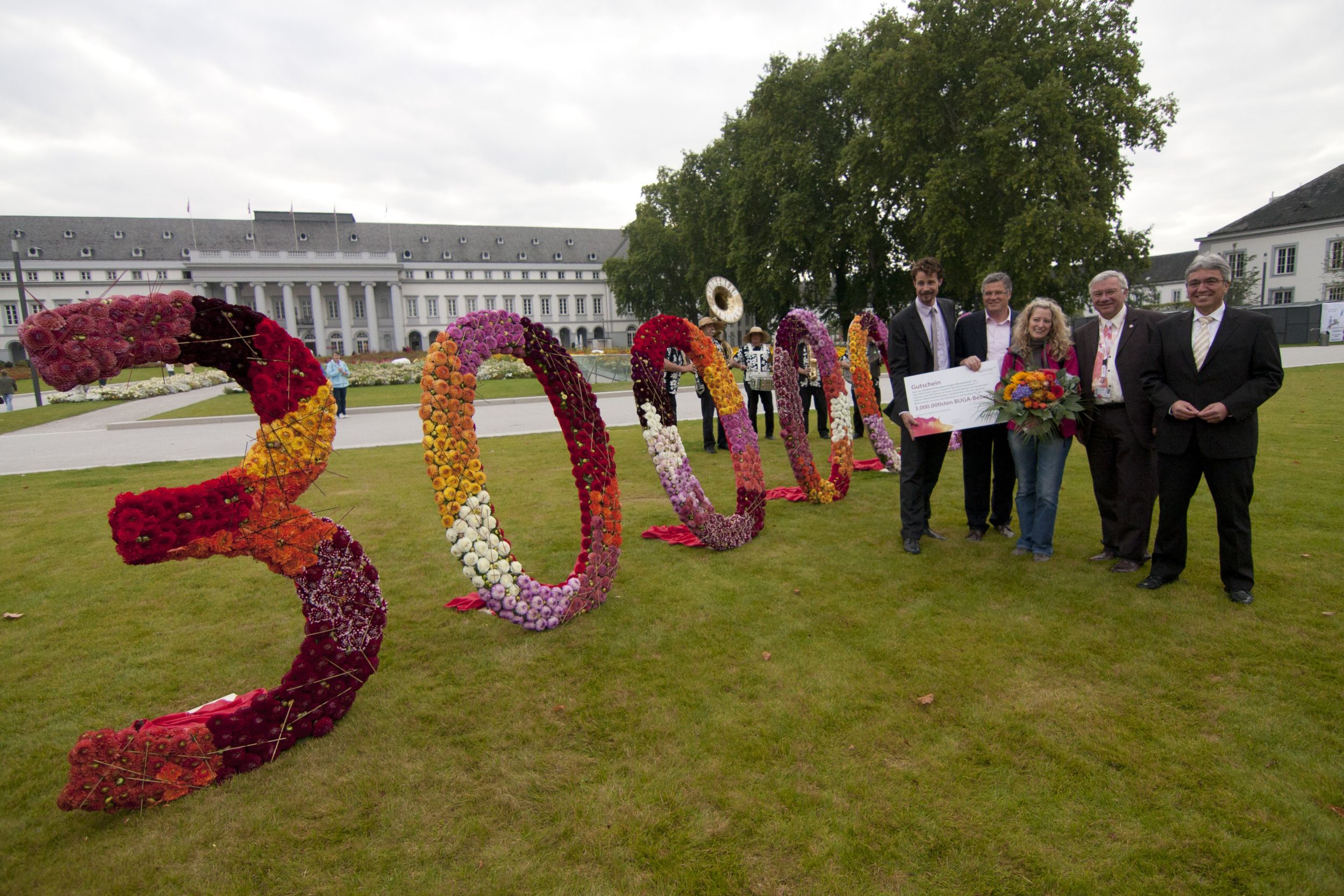 Magische Grenze erreicht: Dreimillionste Besucherin der Bundesgartenschau Koblenz 2011 vor dem Kurfürstlichen Schloss empfangen