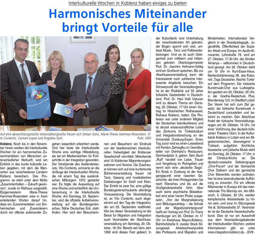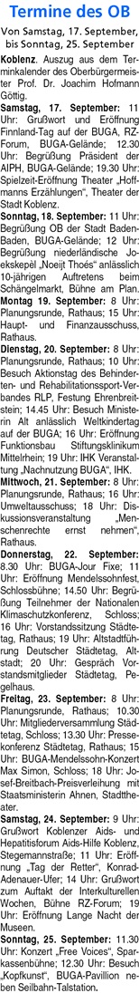 Montag 19.09.2011: Auszug aus Terminen von OB Hofmann-Göttig (ansonsten weitere Termine in Koblenz):
