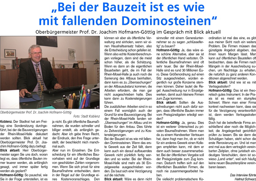 Mit diversen Interviews, u.a. von OB Hofmann-Göttig