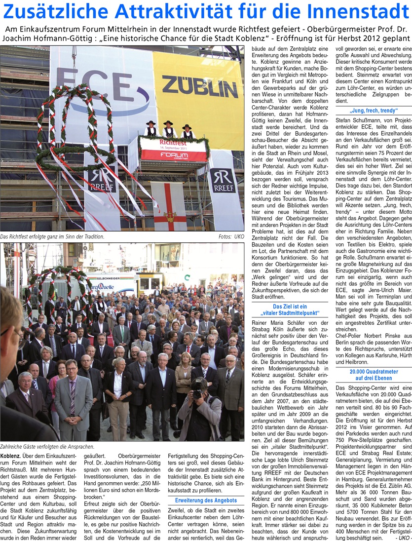 Blick aktuell, Koblenz 17.09.2011, S. 1 und S.10