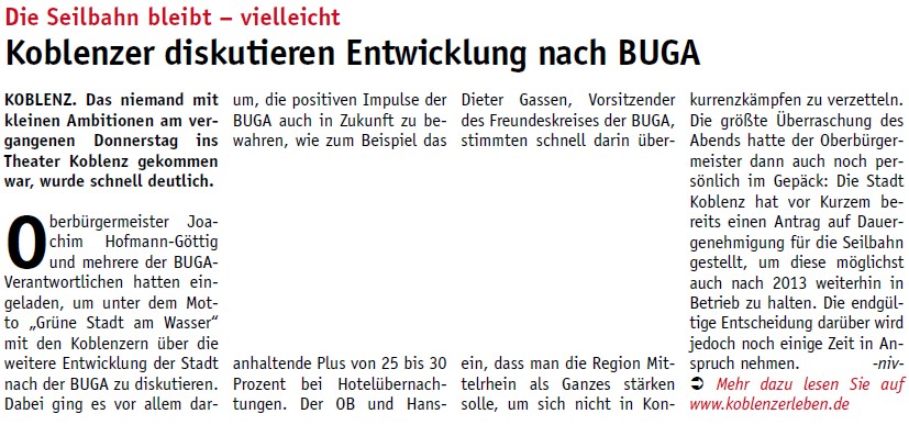 Auszug: KoblenzErleben Die Zeitung 11.05.2012, S.2