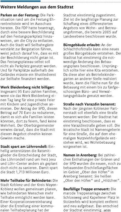 Auszug: Rhein-Zeitung, Koblenz,12.05.2012, S.17