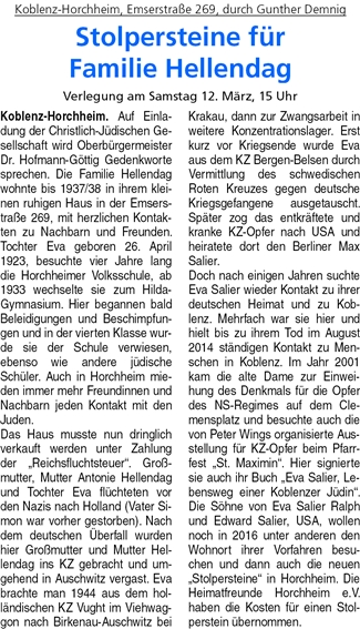 Auszug: LokalAnzeiger Der Schängel, Koblenz 09.03.2016, S. 6