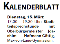 Donnerstag 10.03.2016: Auszug aus Terminen von OB Hofmann-Göttig (ansonsten weitere Termine in Koblenz)