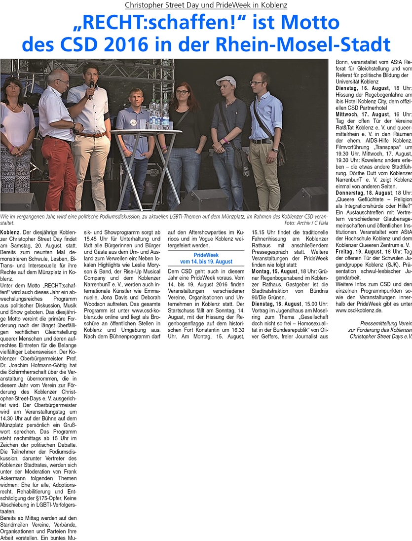 Wortlaut der Pressemeldung der Stadt Koblenz, 02.08.2016
