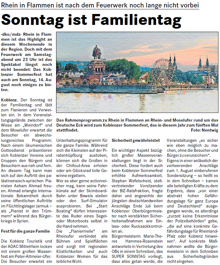 Rhein-Zeitung, Koblenz, 06.08.2016, S. 56, Sonderbeilage “Rhein in Flammen, Offizielle Festivalzeitung Programm” , S. 2
