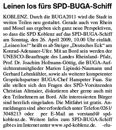 26.04.2009: Einladung zur Schiffstour “BuGa-Stand”
