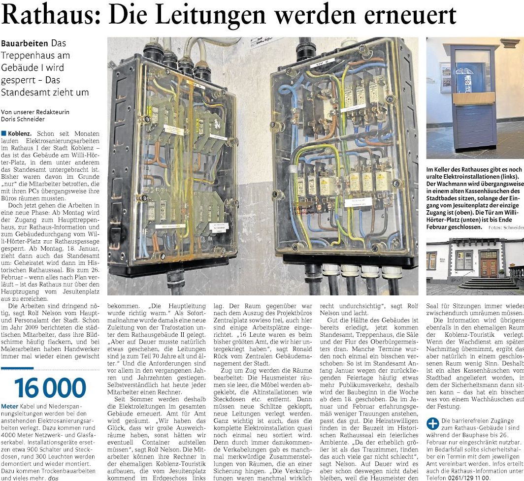 Koblenzer Rathaussanierung: Leitungserneuerung