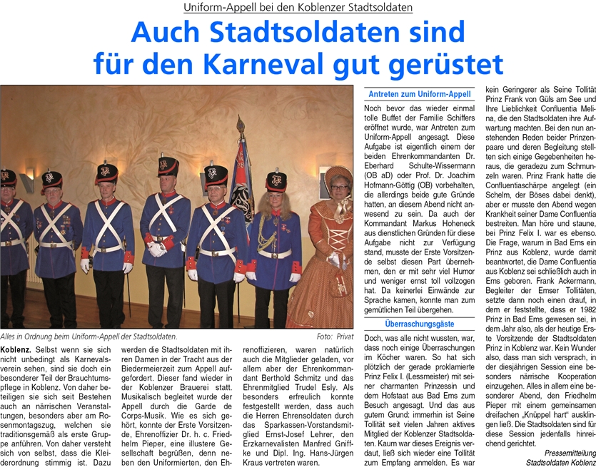 Zum “Uniform-Appell” der Koblenzer Stadtsoldaten