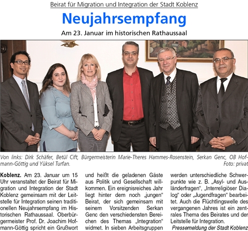 23.01.2016: Neujahrsempfang des Beirats für Migration und Integration der Stadt Koblenz