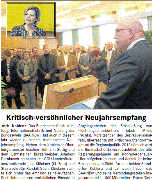 Koblenzer Bundesbehörde BAAINBw lud zum Neujahrsempfang 2016