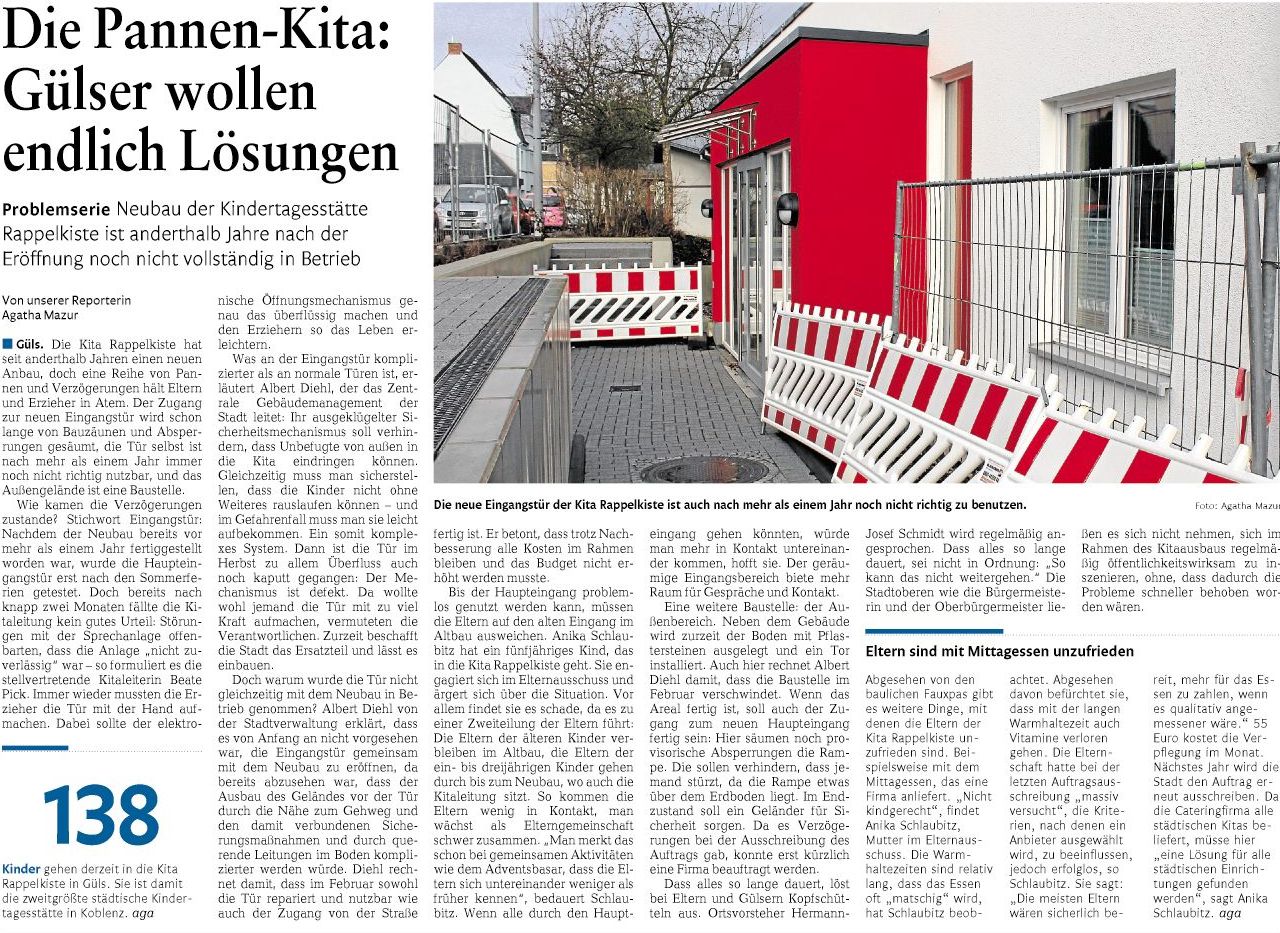 Zur Diskussion über Fertigstellung der Koblenzer Kita “Rappelkiste”