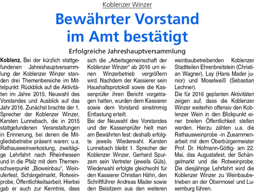 Zur Jahreshauptversammlung der Koblenzer Winzer und Winzerinnen