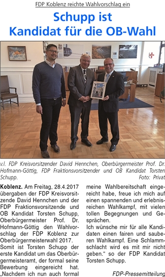 Zur Übergabe des FDP-Wahlvorschlags zur Koblenzer OB Wahl