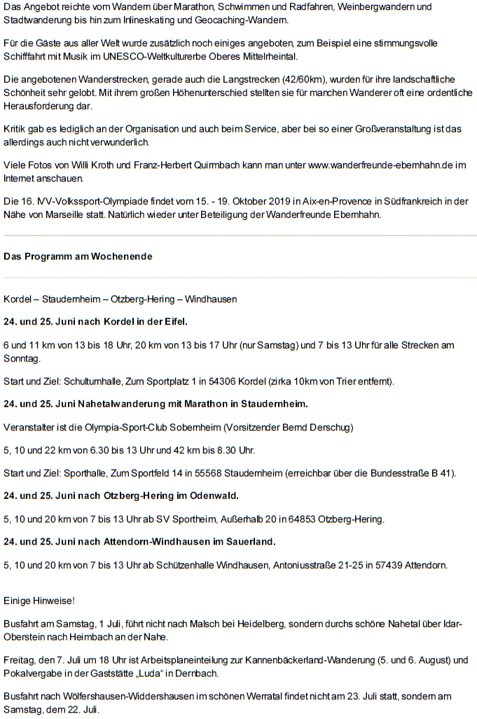 Zum Besuch der Volkssport-Olympiade in Koblenz