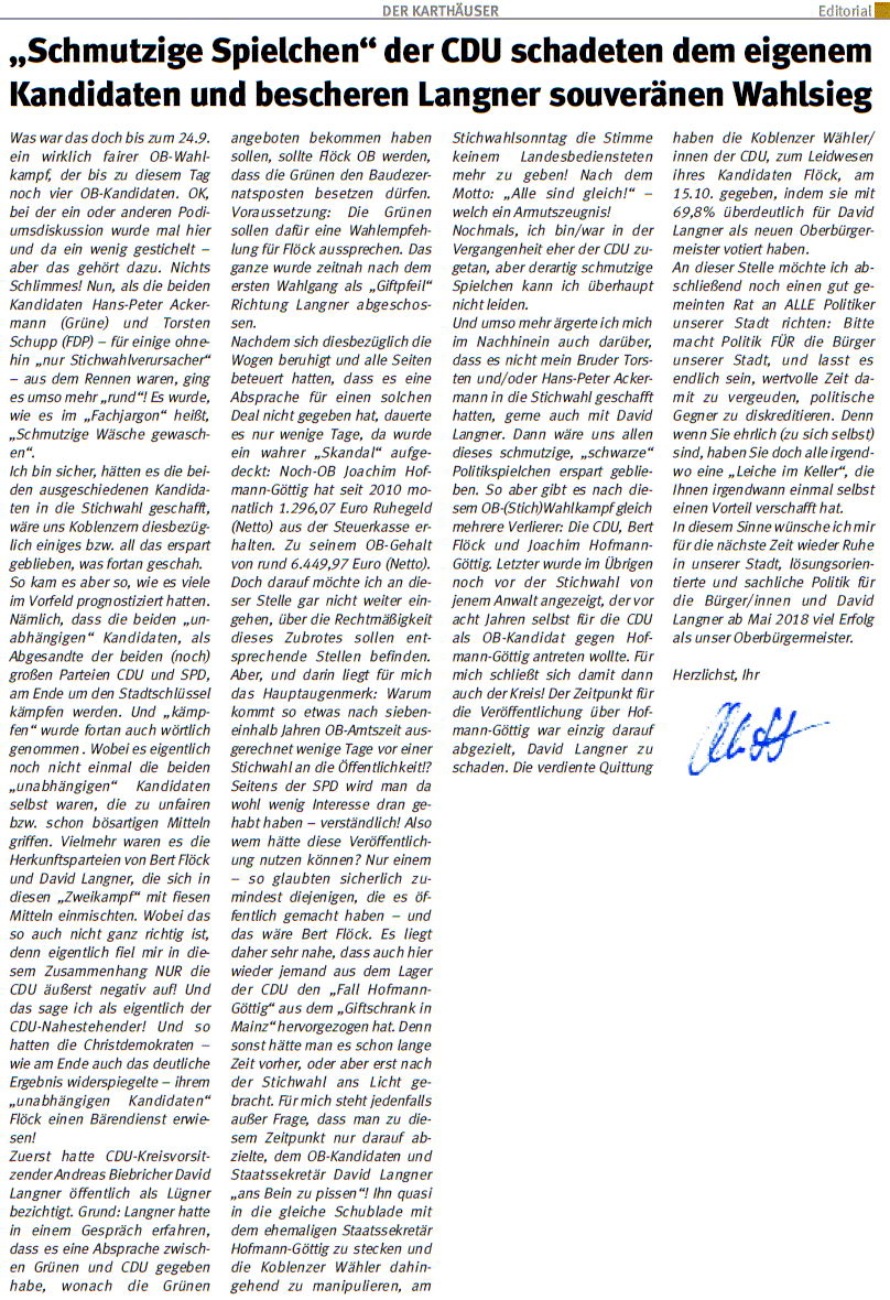 Posted in Medien/Presse zu JoHo by joho Keine KommentareDer Karthäuser, Ausgabe 1, 18. Jahrgang, November 2017, S. 3