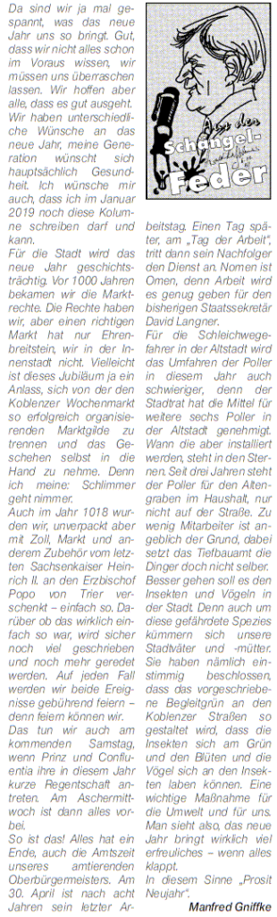 Koblenzer Ratsherr Gniffke zum Ausblick auf das Jahr 2018