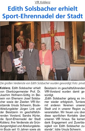 Koblenzer Sport-Ehrennadel an Edith Solsbacher verliehen