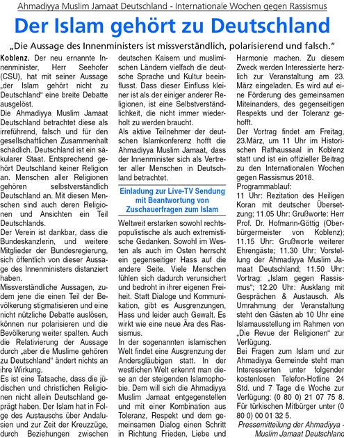 23.3.2018: Dialogveranstaltung im Rahmen der Koblenzer “Internationale Wochen gegen Rassismus”