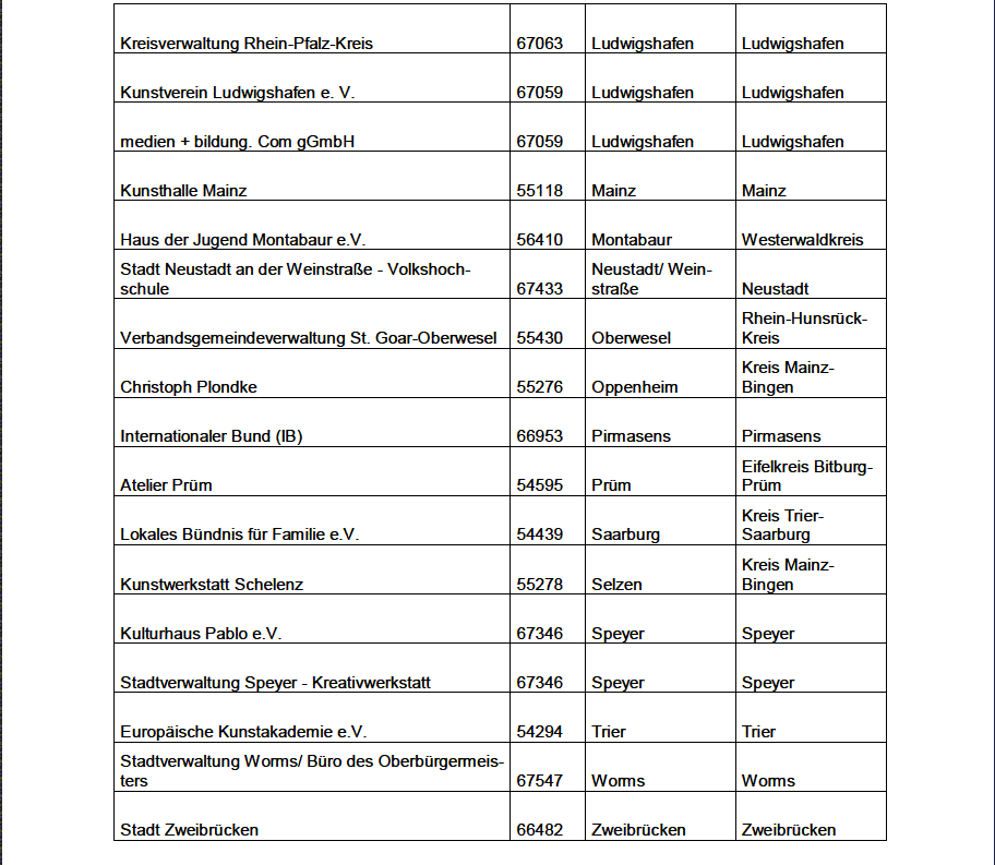 - Anlage: Liste der Träger von Jugendkunstschulen “