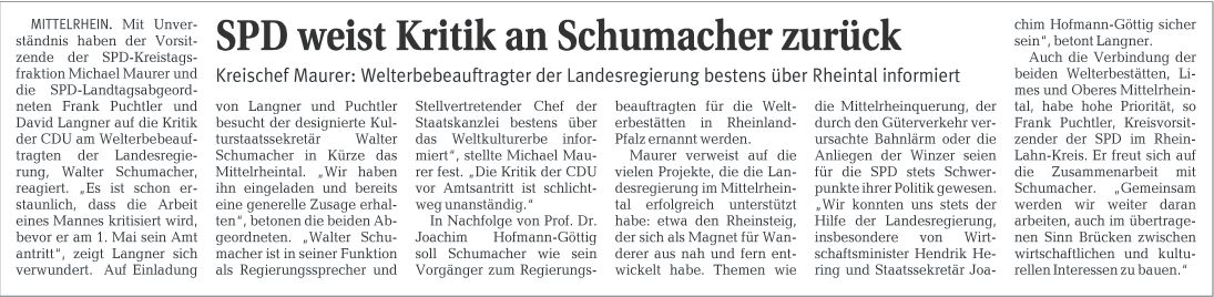 Welterbebeauftragter der rheinland-pfälzischen Landesregierung: Zur Nachfolge Hofmann-Göttigs