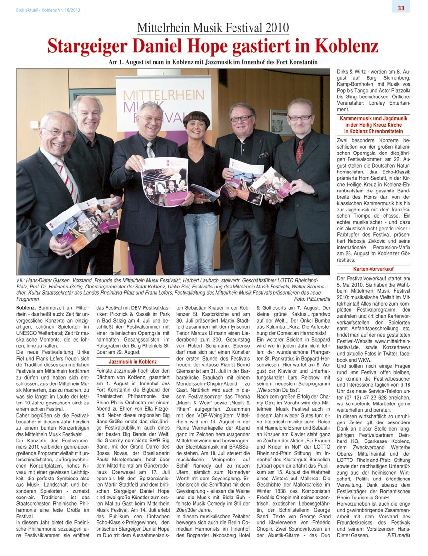 Mittelrhein Musik Festival 2010: Schöne Spielorte mit hochklassiger Musik im Weltkulturerbe Oberes Mittelrheintal